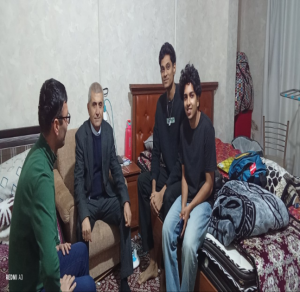 06.11.2025-yilda 1-son o‘zbek va xorijiy tillar kafedra dotsenti Aslanov A.S., o‘qituvchilar Sag‘dullayev M.I. va Temirov J.E. Olmazor tumani, Jiydali MFYida joylashgan 12-uy, 63- xonadonda turuvchi Xalqaro fakultet 3-semestr talabalari Shahul Hameed hamda Thoufeek Muhammed ijara uylariga tashrif buyurib, talabalar bilan suhbat o‘tkazdilar. Tashrif davomida talabalarning ijara xonadoni, yashash tarzi, o‘qish jarayoni to‘g‘risida suhbat bo‘lib o‘tdi.