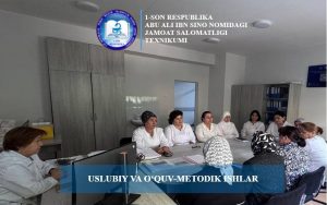 1-son Respublika Abu Ali ibn Sino nomidagi Jamoat salomatligi texnikumida Toshkent davlat tibbiyot universitet bilan hamkorkorlikda “Kasbiy ta’lim tashkilotlarida uslubiy va o‘quv-metodik ishlarni tashkil etishga oid normativ-huquqiy hujjatlar mazmun va mohiyati bilan yaqindan tanishish bo’yicha seminar hamda texnikum o’quvchilari uchun mahorat darslari” tashkil etildi.